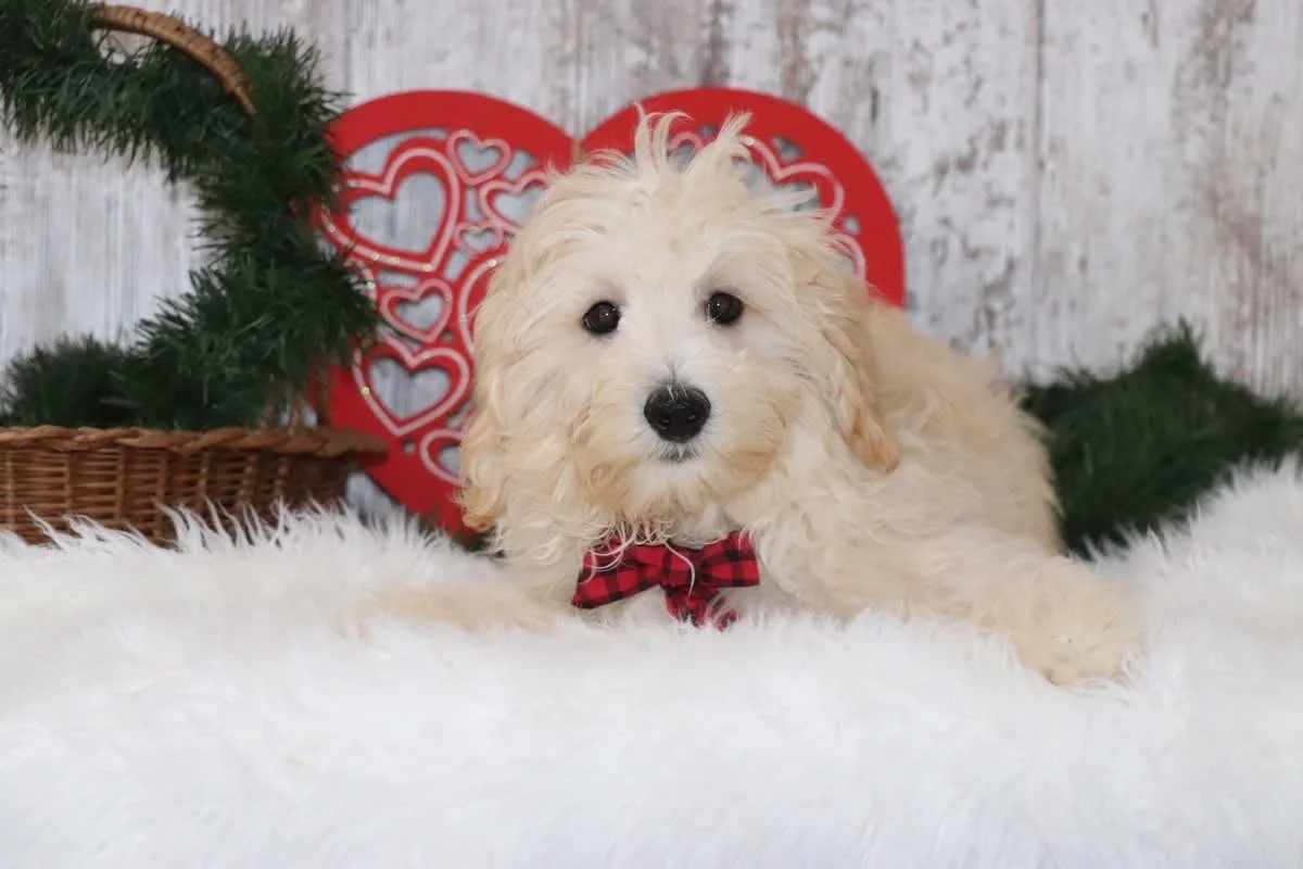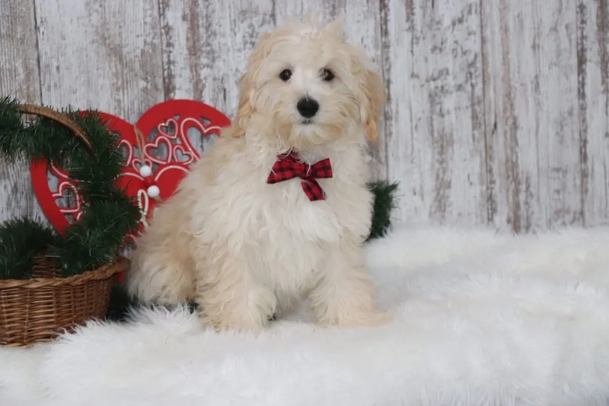 Meet Danny, a 3-month-old Maltipoo with a heart full of love and a bounce in every step. This fluffy little guy is the perfect blend of playful and sweet—he’ll happily chase a toy across the room and then curl up in your lap for a nap. Stanley is a quick learner and already working on his potty training. With his soft, curly coat and big soulful eyes, he’s a total showstopper wherever he goes.