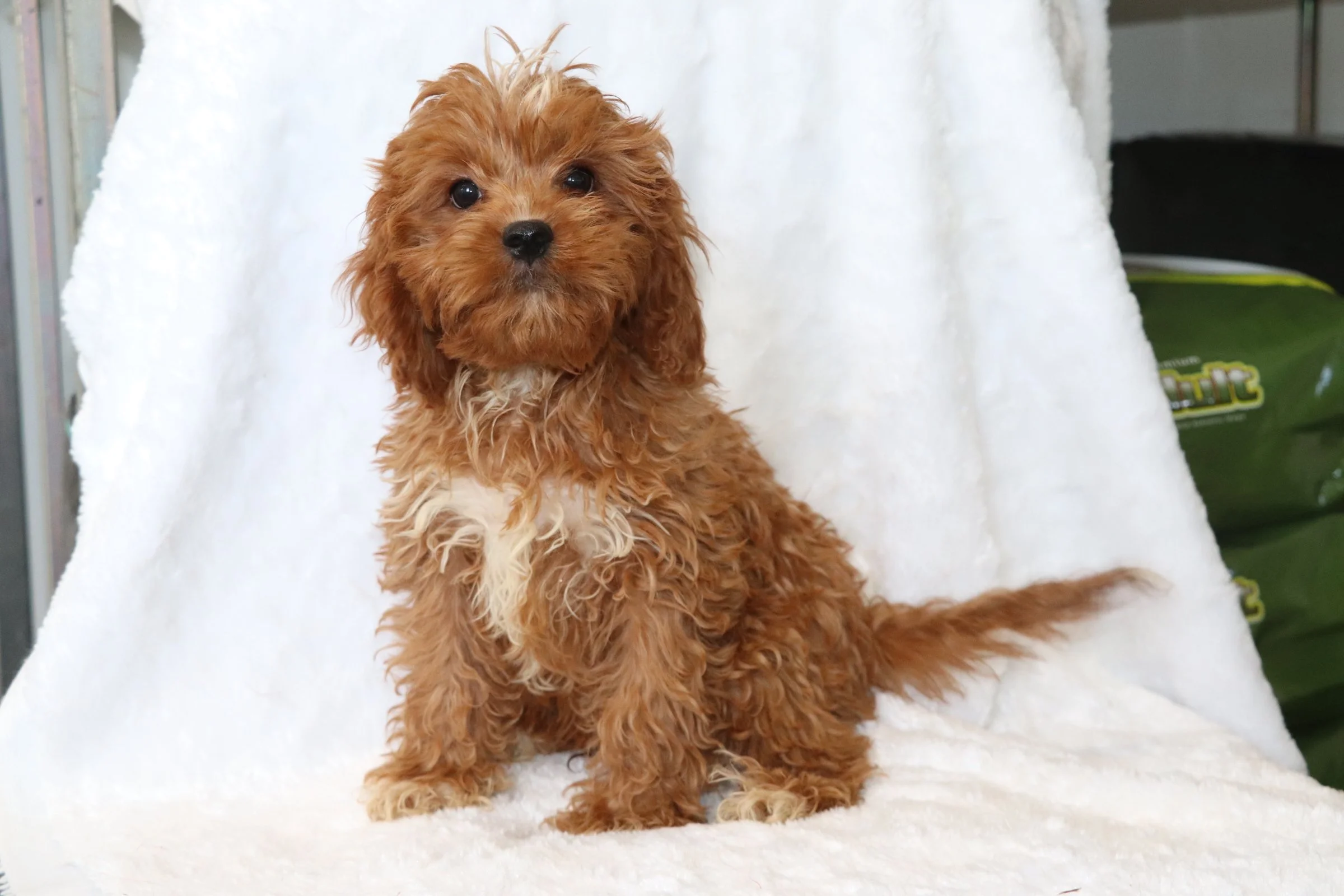 Meet Eddie, a 4-month-old Cavapoo with a charming mix of playful energy and gentle sweetness. With his soft curls, expressive eyes, and wiggly tail, Eddie wins hearts everywhere he goes. He loves to be part of the action—whether that’s exploring the yard, chasing a squeaky toy, or simply following his favorite person from room to room. He’s the kind of puppy who will brighten your day the moment you wake up and snuggle close when it’s time to unwind.